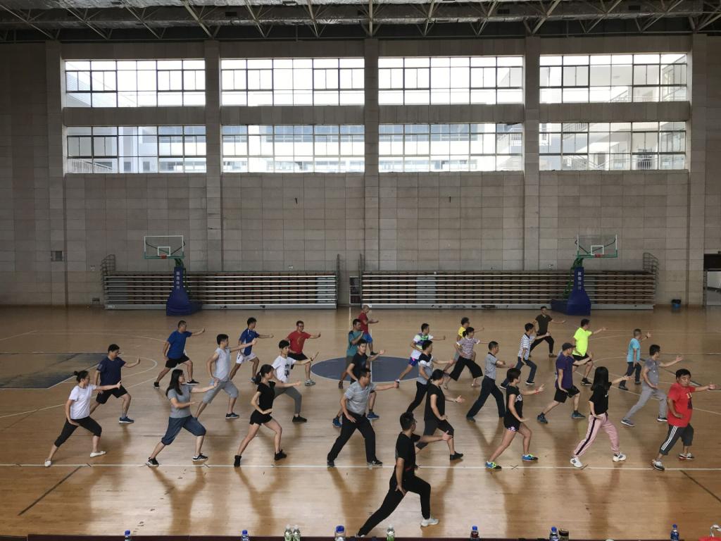 本次活动由学院武体教研室主任许贵泉老师负责主讲。他从太极拳的起源、项目特点展开介绍,一边讲解动作要领,一边进行规范化的动作示范。参加本次活动的广大学院教师,认真聆听讲解的同时,还跟随许老师进行动作套路的学习。在学习过程中,大家还就“二十四式简化太极拳”的相关问题进行了探讨和交流,通过部分专项教师的解答,让大家更进一步了解太极拳这项运动,甚至喜欢上这项运动。