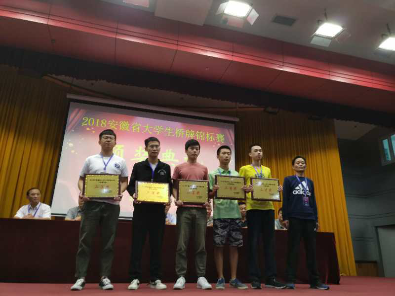 9月16日,由安徽省教育厅主办,合肥工业大学承办,安徽省桥牌协会协办的安徽省首届大学生桥牌锦标赛在合肥工业大学落下帷幕。共有来自省内6所高校14支队伍60余名运动员参加了本次比赛。竞赛项目包含公开团体赛、女子团体赛、公开双人赛、女子双人赛。