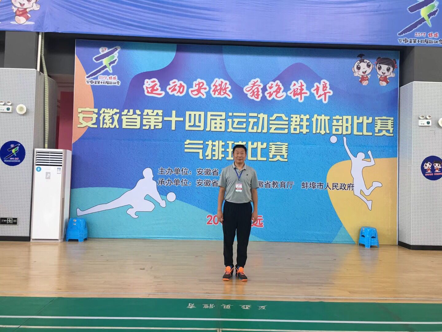 由安徽省人民政府、安徽省体育局、安徽省气排球协会主办,蚌埠市教体局、怀远县教体局承办的安徽省第十四届运动会排球项目比赛在蚌埠市怀远县全民健身中心举行。我院邓龙老师受安徽省气排球协会和安徽省体育局球类中心选派,分别承担了7月16—20日期间举行的群体项目气排球比赛和8月5—12日期间举行的青少年排球比赛裁判工作。