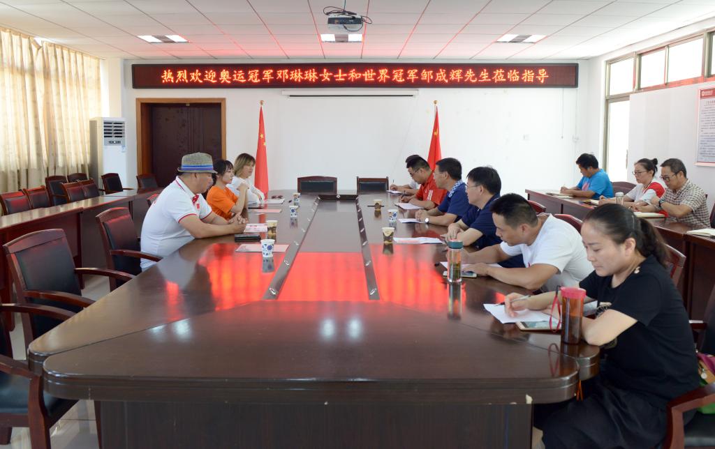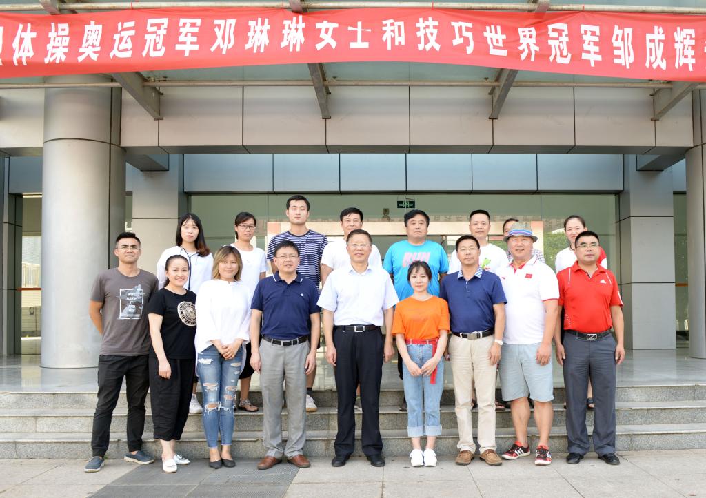 7月26日下午,体操奥运冠军邓琳琳、技巧世界冠军邹成辉在安徽省啦啦操协会秘书长胡彩红等陪同下来香蕉视频