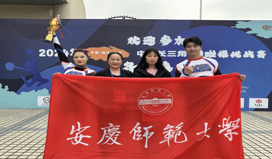 啦啦操代表队在教练员潮芳、刘岩两位老师的带领下,获得公开青年甲组集体花球第一名,青年乙组双人花球第一名的优异成绩。