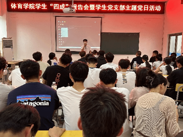 在体育馆多媒体教室开展学生“四成”报告会暨学生党支部主题党日活动。香蕉视频