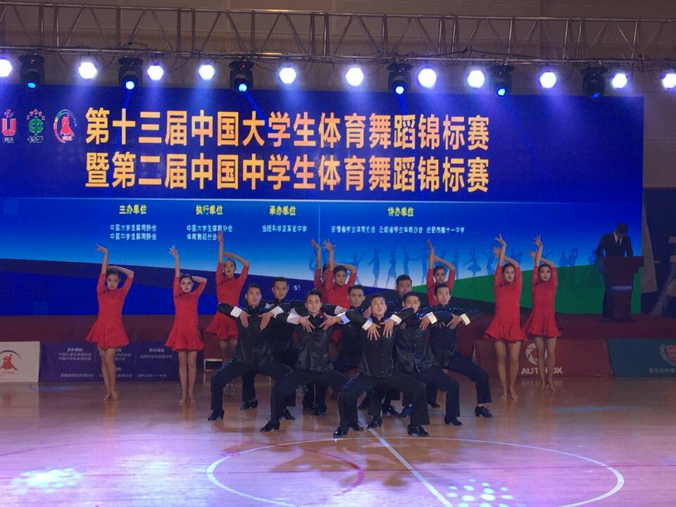 日前,由中国大学生体育协会主办的第十三届中国大学生体育舞蹈锦标赛在合肥落下帷幕,我院代表队在章翔副院长、夏尚群、潘磊和李伟志老师的带领下,奋力拼搏,经过两天紧张激烈的角逐过五关斩六将,共获得3金1银1铜的好成绩,团体舞《久别重逢》获得最佳表演奖,这也是我院成立体育舞蹈专业以来,第二次获得全国大学生锦标赛拉丁团体队列舞冠军。