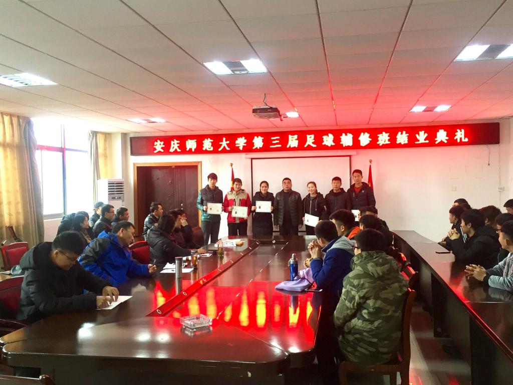 1月5日下午,学院第三届足球辅修班结业典礼在龙山校区体育馆会议室举行,74名足球辅修班同学顺利结业。副院长章翔、球类教研室足球专项老师、足球辅修班辅导员及足球辅修班全体同学参加典礼。会议由球类教研室主任、校园足球发展研究中心副主任林秋菊主持。