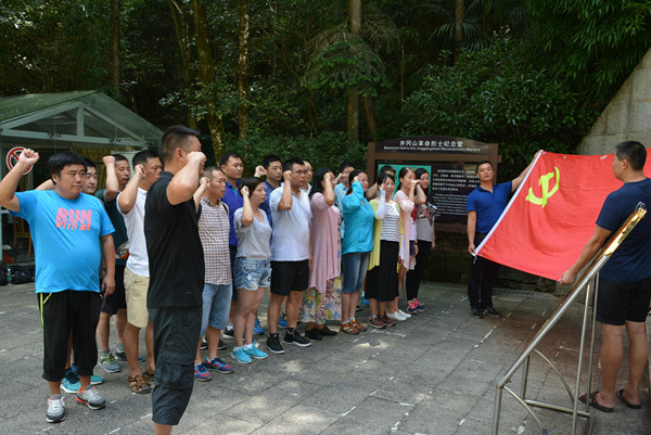 21名党员在党总支副书记周多奇和副院长章翔的带领下,驱车前往井冈山革命根据地进行了主题为“重温入党誓词,弘扬井冈精神”的红色革命教育活动。