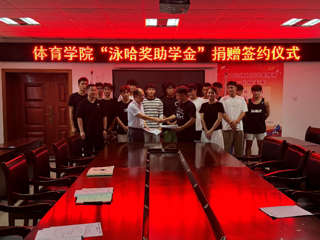 在体育馆三楼会议室举行了“泳哈奖助学金”捐赠仪式。香蕉视频