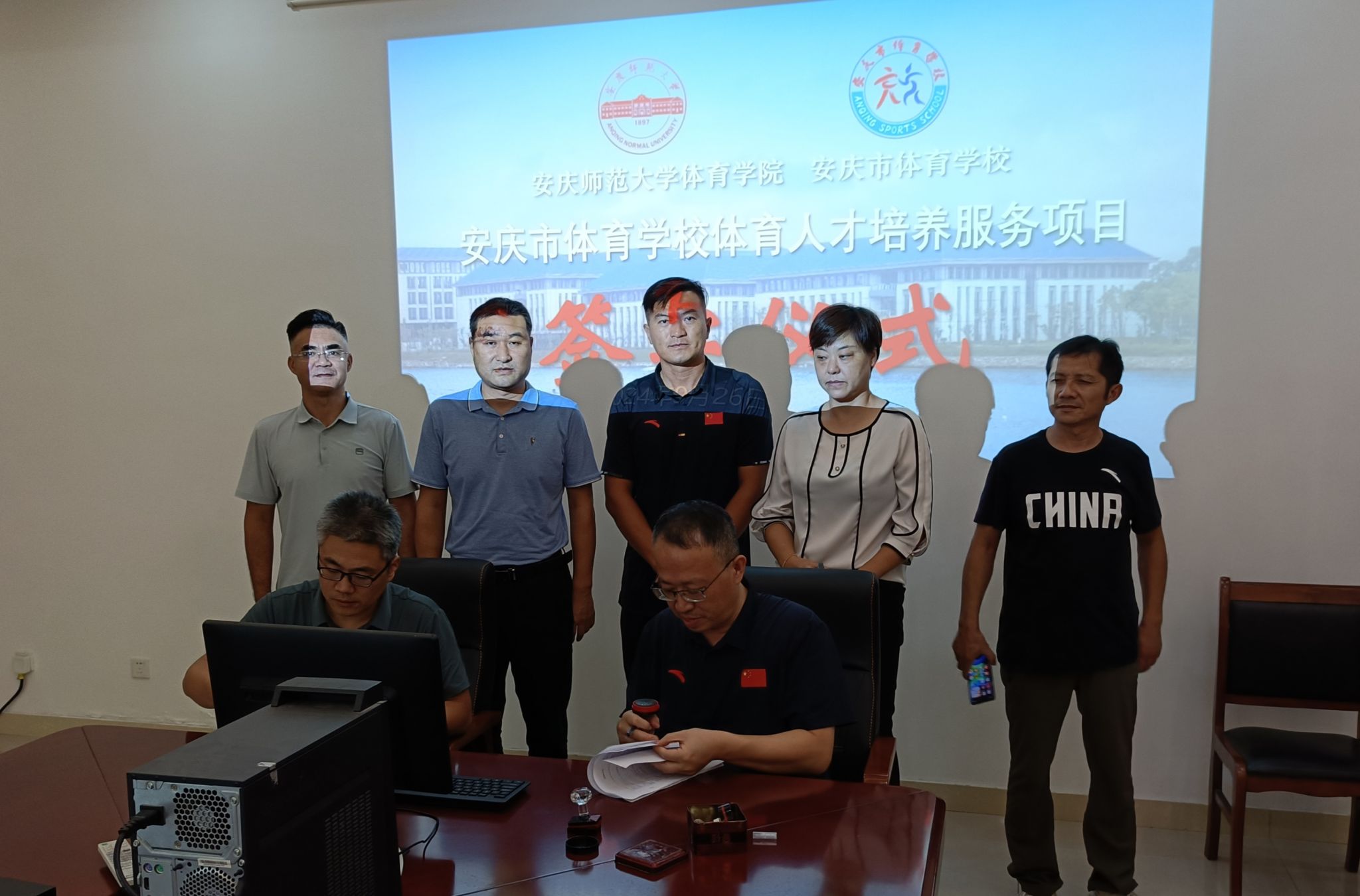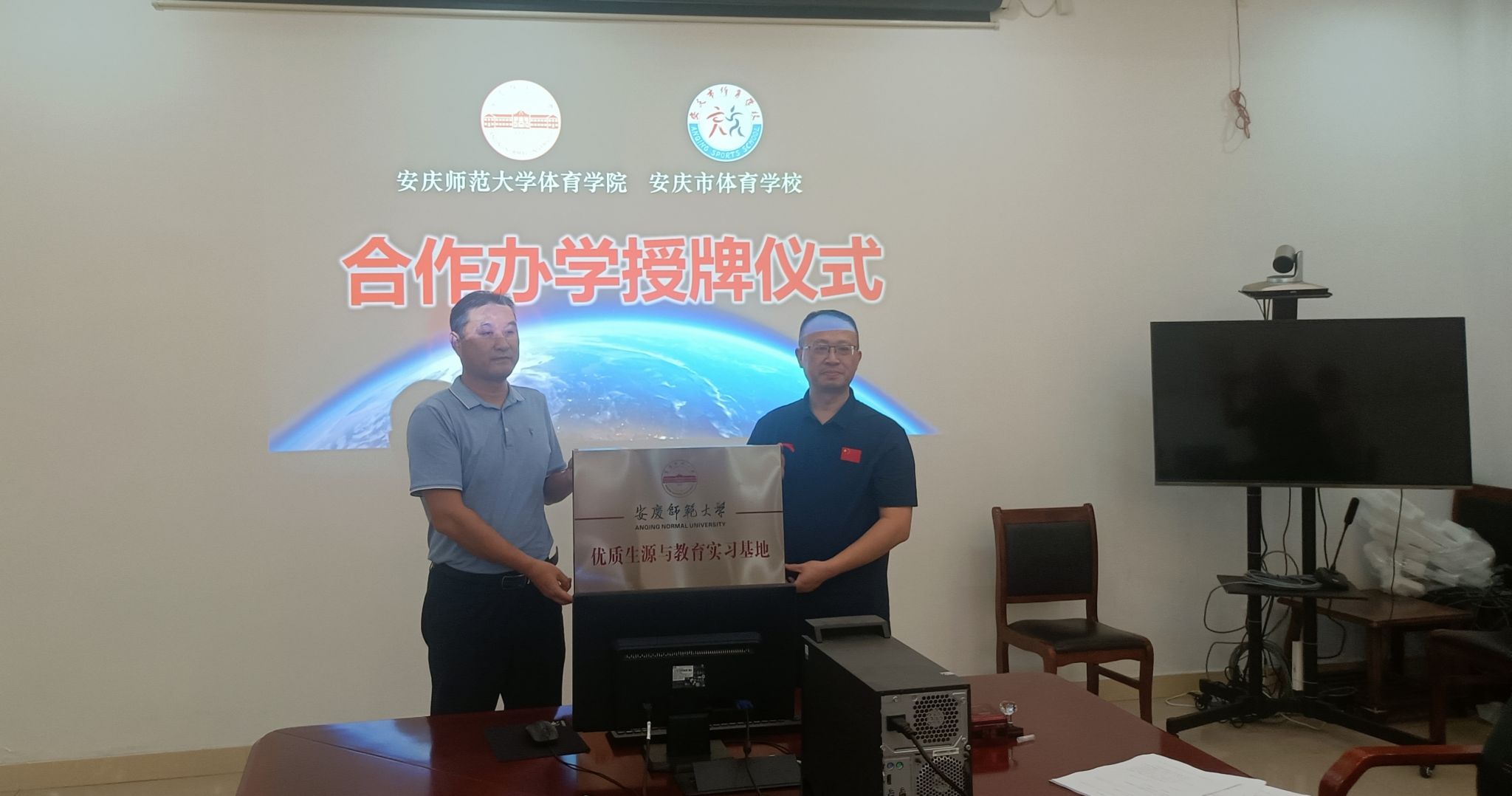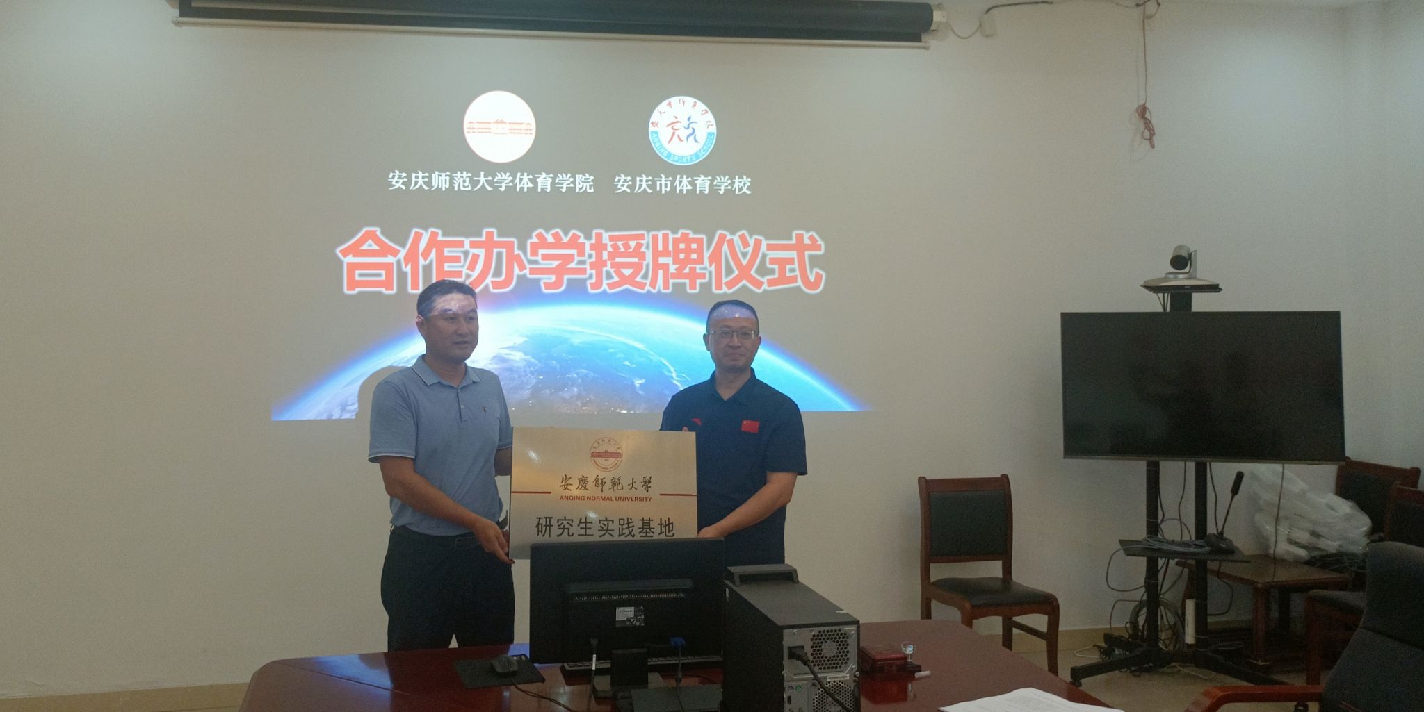 赴安庆市体育学校实习基地,举行授牌暨横向合作签约仪式。院长周多奇、副院长王晓东,安庆市体育学校校长杨庆忠、副校长李永存等人出席了仪式。