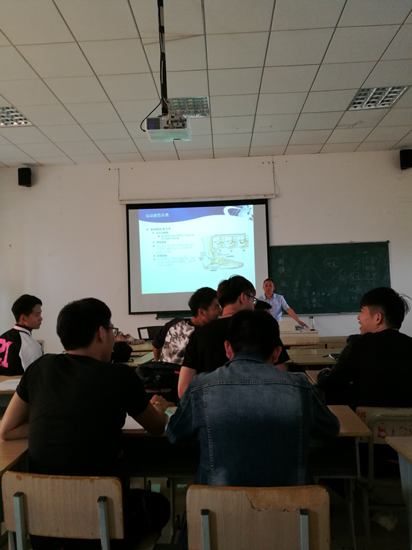 孙明运博士在体育馆多媒体教室为篮球专项班同学做题为“体育运动中常见运动损伤知识讲座”。