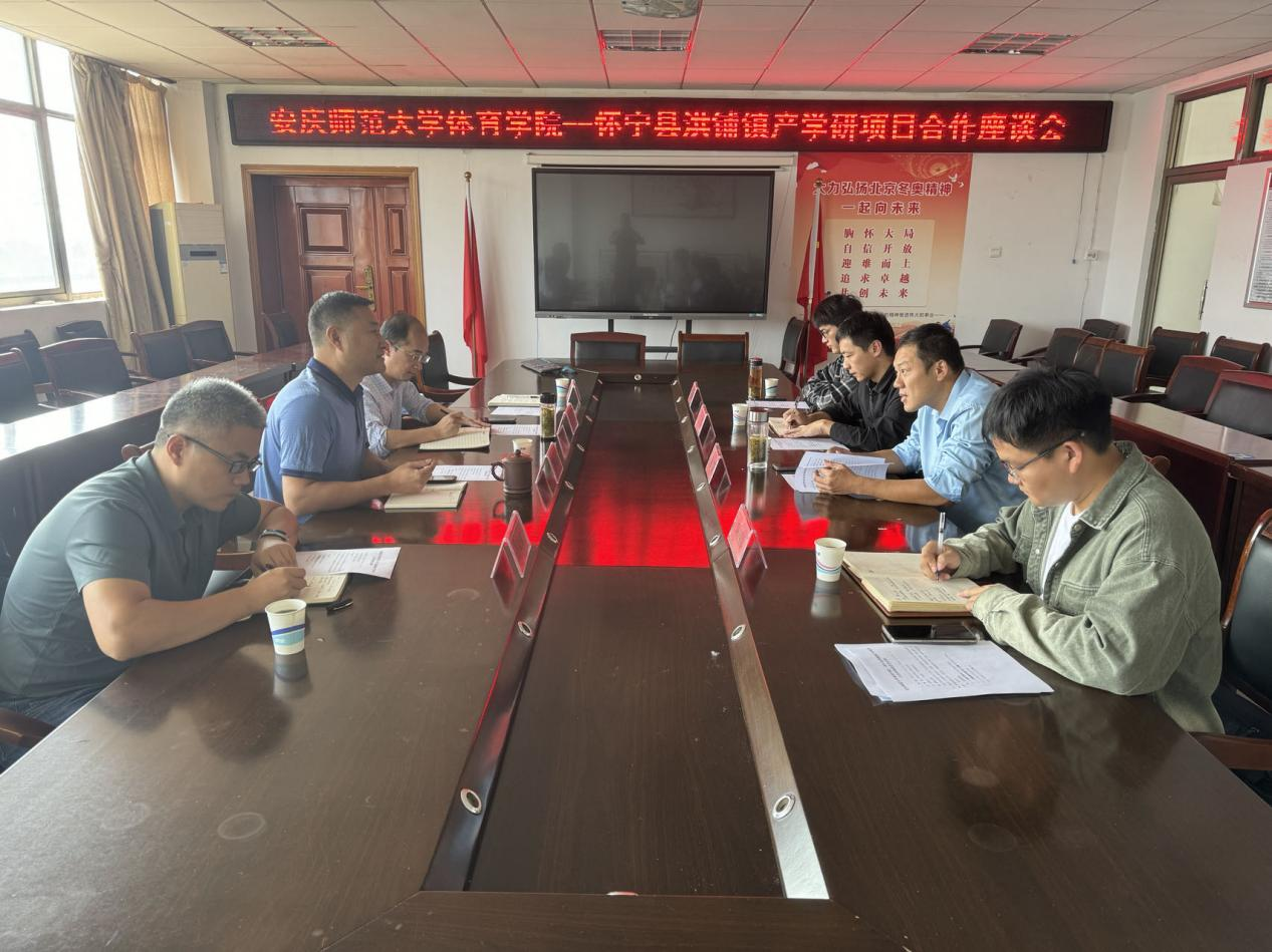 汤霖一行对学院的热情接待表示感谢,对我院的办学成果和社会服务表示赞赏,介绍了怀宁县洪铺镇地方基本情况,表达了在乡村振兴、人才培养、赛事活动等方面的需求。