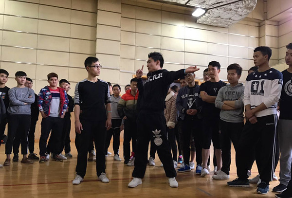 交流会现场,秦勇先生首先介绍了健美操目前最新的技术动作和最有效的训练方法。随后展示了健美操目前国际最为流行的团操课程: DANCE FEEL(炫舞)和COMBAT U(搏击操)。最后秦勇先生针对学生提出的在健美操平时学习过程中遇到的有关竞技健美操技术难度动作等问题一一作了解答。