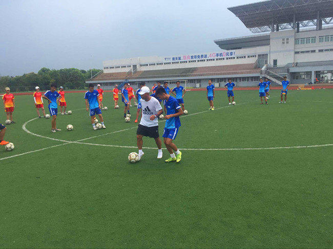 下午,在足球场,孙力老师为足球训练营的全体学生上了一堂实践课。孙力老师主要传授了控球、边锋进攻技术和一对一过人技术。培训期间,孙力老师和足球训练营的同学们还进行了交流互动。