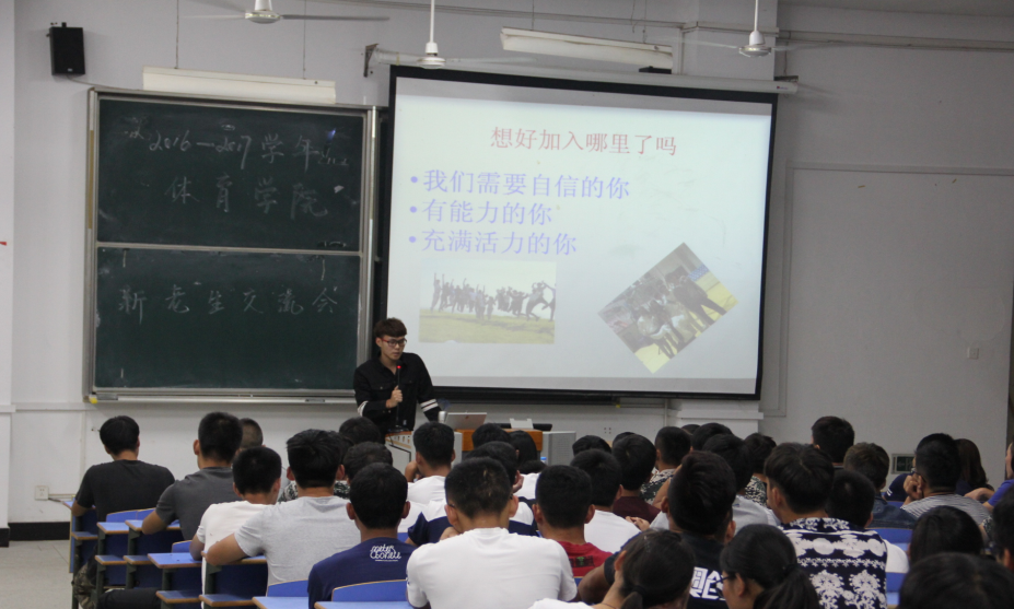 交流会由15级休体专业的王许修同学主持。为了让2016级新生熟悉即将学习生活四年的大学校园,首先就由主持人介绍香蕉视频