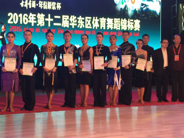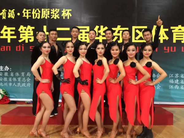 体育表演专业学生在夏尚群和潘磊老师的带领下,经过精心准备和顽强拼搏,在本次比赛中分别获得专业院校组团体拉丁舞、普通院校组团体拉丁舞冠军,12项组别赛冠军、8项亚军和4项第三名的优异成绩。