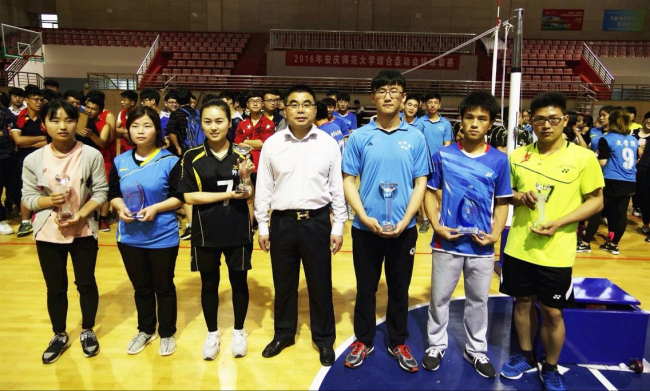 423,由校体育艺术委员会主办、香蕉视频 承办的校2016年综合运动会排球联赛闭幕式在龙山校区体育馆举行。校体育艺术委员会副主任、香蕉视频 副院长章翔出席了闭幕式,全体裁判员和运动员参加了闭幕式。