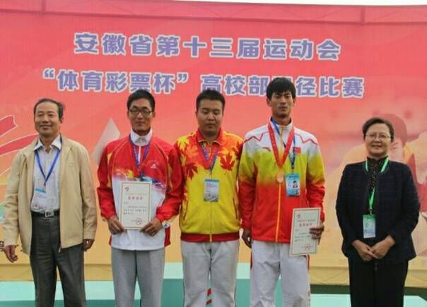 尹超同学在校期间数次蝉联校运会甲组标枪冠军,在2014年10月举行的第十三届省运会比赛中,更是先声夺人,为学校赢得第一枚奖牌。来自单亲家庭的尹超,在校期间成绩优秀,生活简朴,在被选拨为省运会运动员后积极参加训练,经过长达一年半的认真刻苦集训后,他和队员们的成绩都突飞猛进,在省运会中安庆师范学院“三铁”训练队共夺得一金、一银、三铜、三个第四名,两个第五名,全部进入前八名的好成绩。