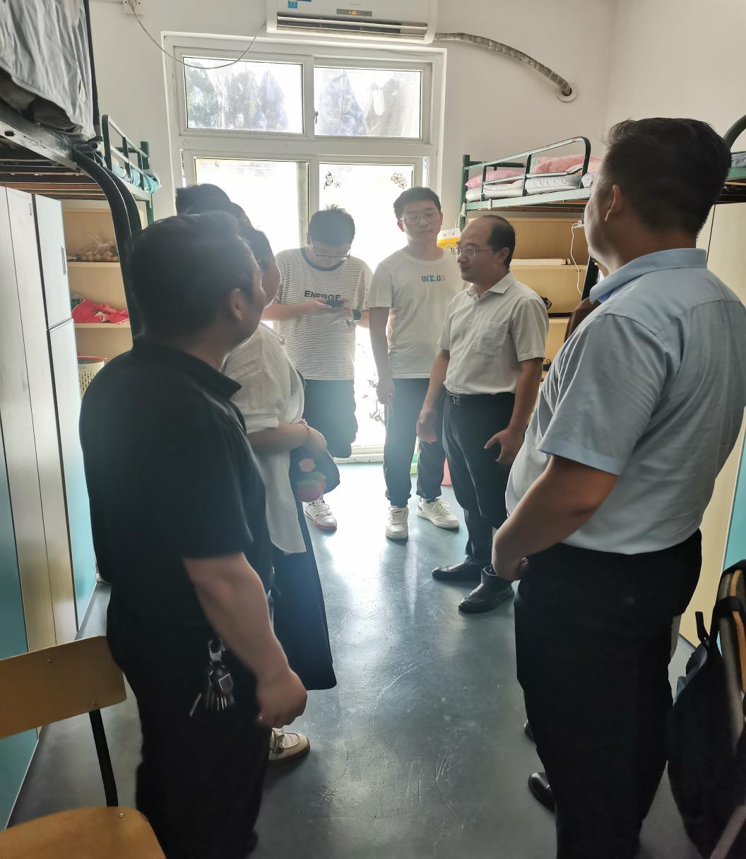为深入了解新生生活与思想状态,促进学院新生对大学环境的适应,新生报到当天,学院领导班子带领新生辅导员老师,深入走访了新生宿舍,与新生和家长面对面交流,为新生们送去诚挚的问候与贴心的关怀。学院领导深入每一间宿舍,与新生和家长亲切交谈,倾听学生和家长需求,慰问关心新生目前的生活适应情况,表达了学院对新生的亲切关怀,希望新生要珍惜美好的青春时光,尽快适应大学的学习节奏,树立明确的学习目标,培养自主学习和创新的能力。老师们检查了宿舍卫生状况、安全设施及生活设施,亲切慰问了新生开学后的实际困难,并逐一针对反馈问题提出切实可行的解决方案。