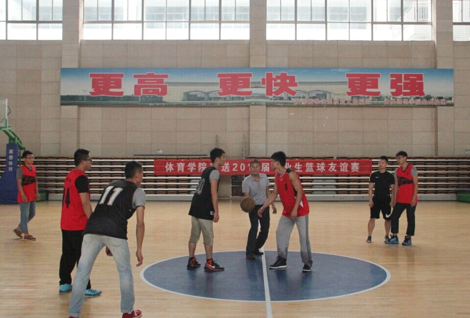 2015届毕业生离校前的良好氛围,由学院团总支举办的一场欢送2015届毕业生篮球友谊赛,5月8日中午在体育馆室内篮球场隆重举行。比赛邀请了学院党政领导,学生工作办公室负责同志,毕业班辅导员前来观战。