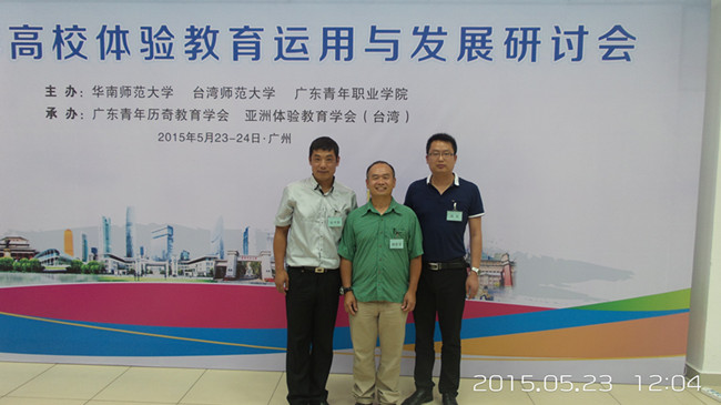 张书军老师应邀参加了首届两岸高校体验教育运用与发展研讨会。本次研讨会由华南师范大学、台湾师范大学和广东青年职业学院(广东省团校)主办,由广东青年历奇教育学会、亚洲体验教育学会(台湾)承办。来自两岸的近百名高校体验教育工作者就欧美体验教育发展新动向、两岸高校体验教育运用与发展等议题展开了广泛地讨论。