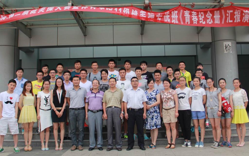 座谈会结束后,学院领导、老师与全体毕业生党员在体育馆门前合影留念。(胡哲纯)