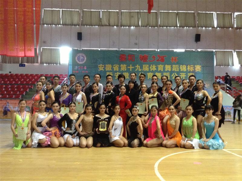 2011级、2012级和2013级体育艺术表演专业体育舞蹈专项班的学生在夏尚群和潘磊两位老师带领之下,参加了此次大赛。经过激烈竞争,我院学生最终在安徽省第十九届体育舞蹈锦标赛上获得5项冠军、3项亚军和3项季军,并获得团体第一名和团体拉丁表演舞冠军;在安徽省体育舞蹈公开赛上获得7项冠军、3项亚军,并在技术等级赛中获得5个一等奖。