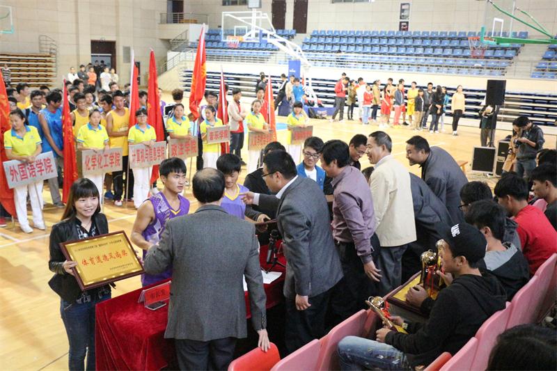 在闭幕式上,总裁判长林秋菊老师宣布了获得“体育道德风尚奖”的代表队名单、“优秀运动员”名单和本次联赛的比赛成绩。来自全校14个学院的20支代表队经过9天、45场比赛的激烈鏖战,最终数学与计算科学学院、物理与电气工程学院、计算机与信息学院、化学化工学院分获男子组前四名;外国语学院、经济与管理学院、教育学院、文学院分获女子组前四名;香蕉视频