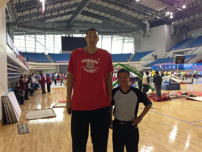 与世界上最高的职业篮球运动员孙明明合影