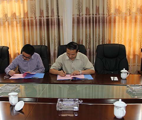 党总支书记吴毅安与天柱山风景名胜区管委会办公室主任徐峰代表双方在合作协议书上签字。