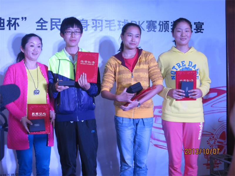 2013年10月6日—7日,安庆市“奥迪杯”全民健身羽毛球PK赛在市一枝梅球馆隆重举行。我院以章翔副院长为领队,以孟海江、王友亮两位老师为教练,以体育教育专业2010级、2011级和2012级羽毛球专选班的同学为队员的代表队,应邀参加了本次比赛。最终经过紧张激烈的角逐,我院2010级高茜同学荣获本次比赛女子单打冠军;2010级孙亚敏同学荣获本次比赛男子单打亚军;2010级朱兆慧和2011级余颖超两位同学荣获女子单打并列第五名;2010张同舟和2011李昱两位同学荣获男子单打并列第五名。另外有多名队员晋级了16强。