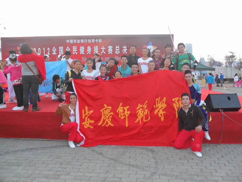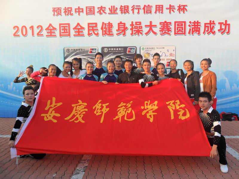10月10日-15日,全国万人全民健身操大赛总决赛在山东省青岛市举行,我院2010级体育教育专业二十余名学生,在王云辉老师的带领下,经过为期6天的激烈竞争,最终吴鹏程、朱夜晴等同学获得了大学组有氧舞蹈5级套路一等奖;付明珠、赵浩杰等同学获得了大学组有氧舞蹈5级套路二等奖;汪慧娟、杨阳等同学获得了大学组有氧舞蹈6级套路二等奖;周露露、张楠等同学获得了大学组轻器械健身操4级套路二等奖;林伟伟、吴琳等同学获得了大学组轻器械健身操6级套路二等奖;赵浩杰、丁立等同学获得了大学组轻器械健身操6级套路三等奖。另外,安庆师范学院代表队还获得了“最佳服饰奖”,王云辉老师还获得了“优秀教练员”称号。
