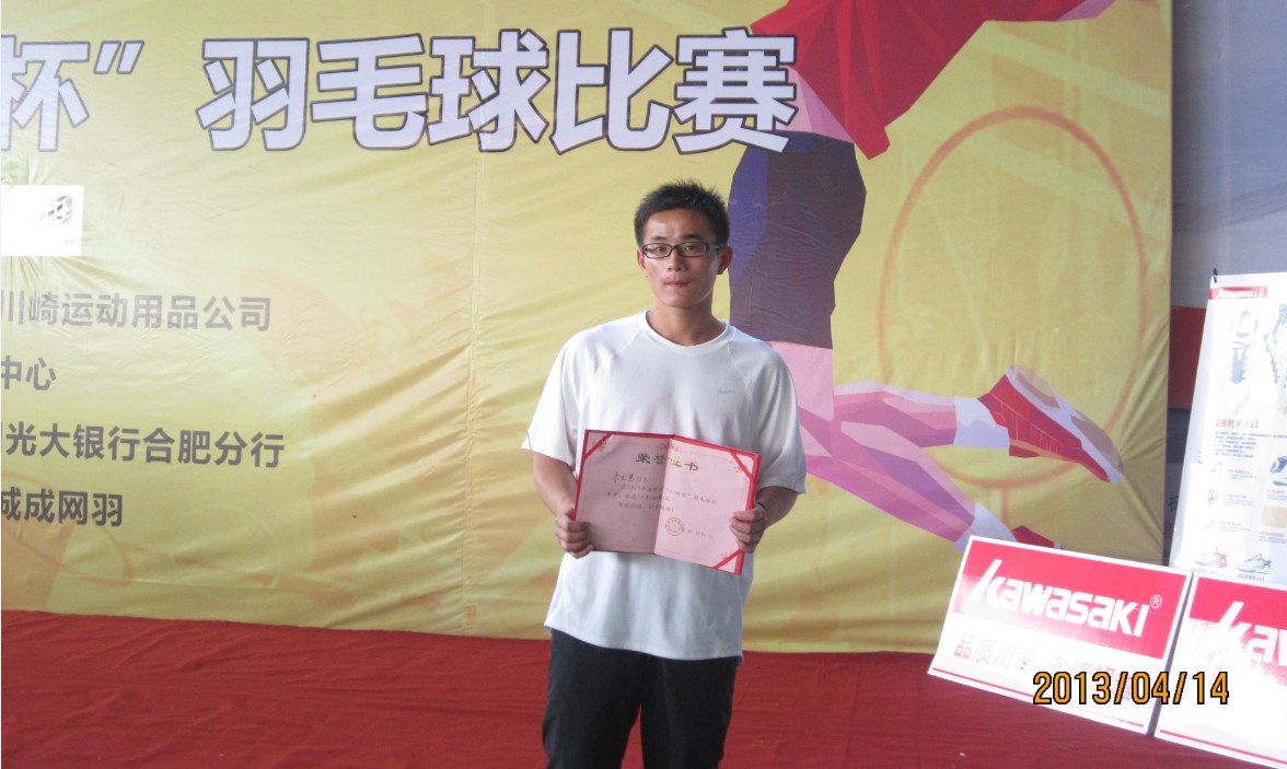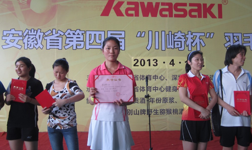 2013年4月13日,由安徽省体育中心举办的第四届“川崎杯”羽毛球赛在安徽省体育中心健身培训中心羽毛球馆内隆重举行。我院学生在王友亮老师的指导下,经过紧张激烈的竞争,最终参赛的11名学生,有10人进入第二轮淘汰赛, 4人进入十六强, 2人闯进前八强。其中,2010级体育教育专业的朱兆慧同学荣获本次“川崎杯”羽毛球赛女子单打第三名、2010级体育教育专业的孙亚敏同学荣获本次“川崎杯”羽毛球赛男子单打第五名。