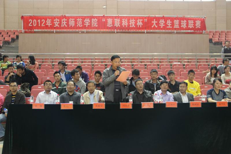 在闭幕式上,党委委员、副院长闵永新宣布安庆师范学院“惠联科技杯”大学生篮球联赛胜利闭幕并致闭幕词。他代表校党委和行政班子,向在比赛中取得优异成绩的代表队表示热烈的祝贺!向付出辛勤劳动的裁判员和全体工作人员致以崇高的敬意!向本届篮球联赛的赞助单位“安庆市惠联科技电脑有限公司”表示诚挚的感谢!