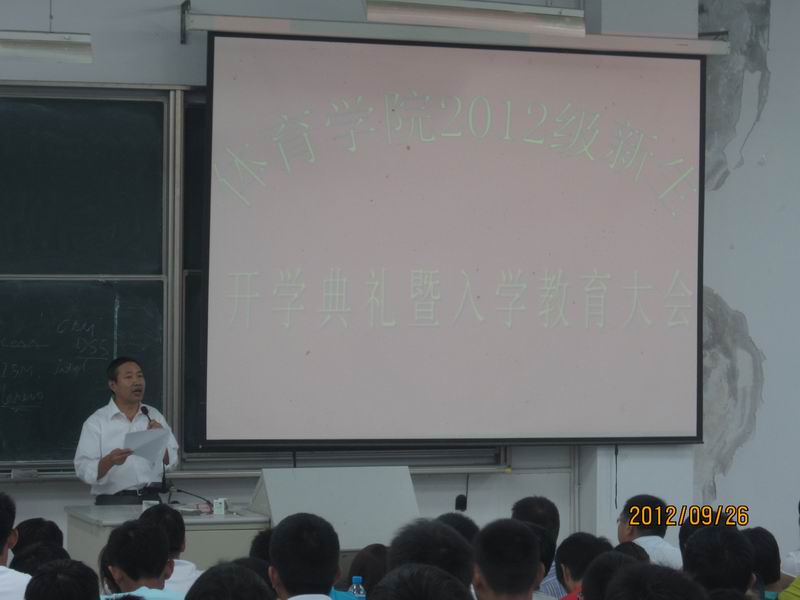 的发展历程、师资队伍、场馆建设、人才培养、招生及就业情况进行了详细的介绍,他还结合自己多年的教学经验,为2012级新生做了专业学习方法的指导教育报告。院团总支、学生工作办公室副主任鲁雷为新生做了校纪校规的教育报告。