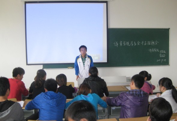 学生会在龙山校区文溯楼205教室举行2011级新生招聘会。院团总支副书记、学生工作办公室副主任鲁雷和汪洋老师莅临招聘会现场指导招新工作。
