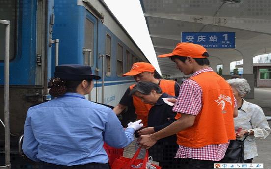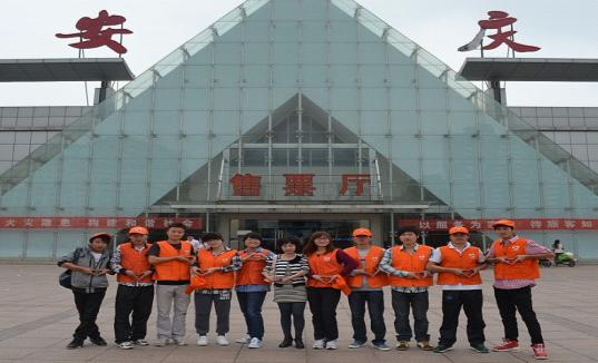 组织10余名志愿者到安庆市火车站开展“五一”志愿服务活动。