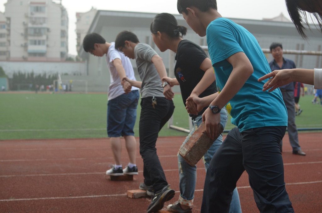 活动首先在安庆一中学生精心准备的“梦江南”节目中拉开帷幕,我院同学也以一首“老男孩”进行反馈,开始了沟通与协作的旅程。活动中,我院同学以讲述自己与母亲故事的方式自我介绍,为接下来的拓展训练做情感基础。随后开展了三个拓展训练项目:在《数字报团》项目中,全体队员围成一个圆圈站立,顺时针或者逆时针向同一方向慢跑,当培训师喊出一个数字时,相对应的人数要尽快抱在一起,剩余未能抱成团的队员将或受到“奖励”;在《一方有难,八方支援》项目中,所有参加者分成三队,每队安排一个队长,让队长与队员分开,保持一定距离,队长是有难的一方,队员是支援一方。在训练师的口令下,开始队长需要什么队员送什么,以有限时间内最快速度到达队长那里,而最慢的将给予“奖励”;在《硫酸河》项目中,按每组人数准备相应数量的砖块(道具),所有学员必须使用发给的砖块(道具),渡过硫酸河到达对岸过程中,砖块(道具)以外的部分碰触河面(地面),则全体退回起点重来,砖块(道具)不可离开成员,否则就会流失。最后,活动在对母亲的感恩分享中结束。