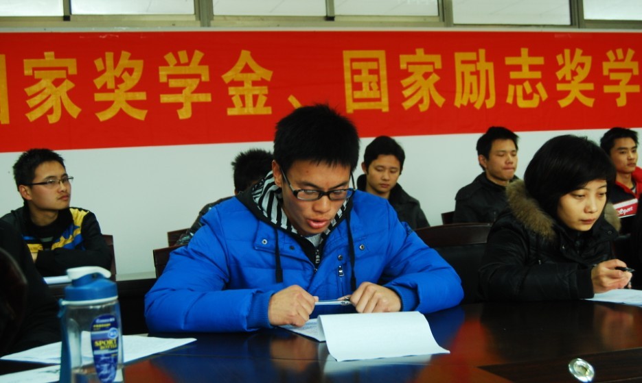 在体育馆三楼会议室召开国家奖学金、国家励志奖学金获得者座谈会,学院党总支副书记韦长发出席座谈会。院团总支副书记、学生工作办公室副主任鲁雷,学院学生资助工作专管老师汪洋以及学院获得2010—2011学年度国家奖学金和国家励志奖学金的全体同学参加了座谈会。会议由院专职辅导员贾涛老师主持。