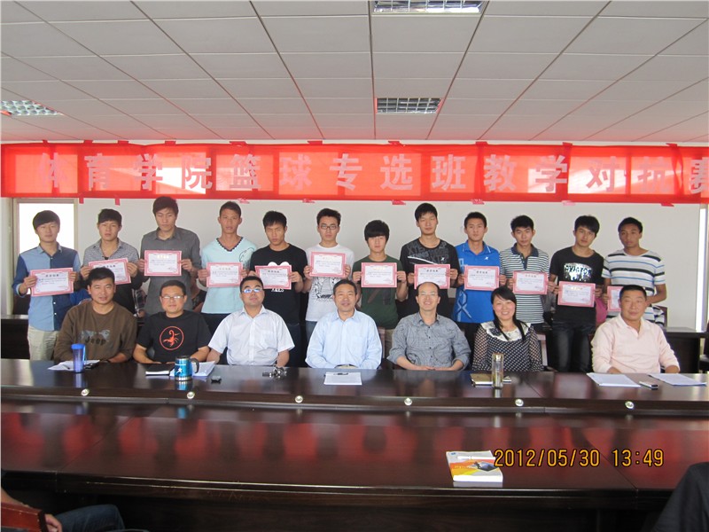 2012年篮球专选班教学对抗赛总结表彰大会在体育馆会议室举行。体育学院党总支书记吴毅安、副书记韦长发、副院长章翔、球类教研室主任林秋菊、各相关篮球专选老师及篮球专选班的全体同学出席了会议。会议由香蕉视频