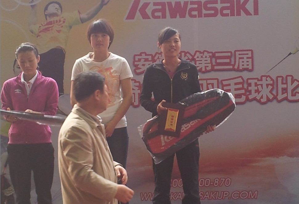 4月14日,由安徽省体育中心举办的第三届“川崎杯”羽毛球赛在安徽省体育中心健身培训中心羽毛球馆内隆重举行。我院学生在孟海江、王友亮两位老师的指导下,经过紧张激烈的竞争,最终参赛的9名学生,有七人进入第二轮淘汰赛, 四人进入十六强, 三人闯进前八强。其中,2009级体育教育专业的金道家同学、2010级体育教育专业的高茜同学分别荣获本次“川崎杯”羽毛球赛男女单打第三名。