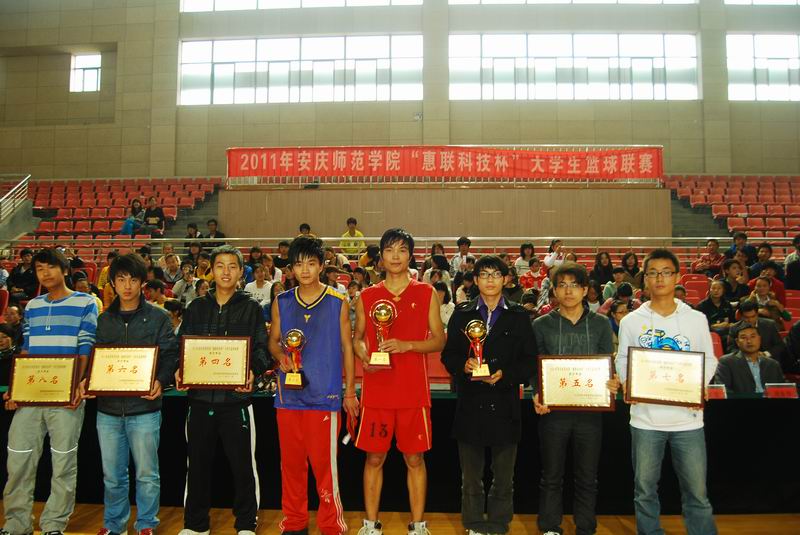下午,安庆师范学院2011年“惠联科技杯”大学生篮球联赛在龙山校区体育馆篮球馆胜利闭幕。校党委委员、副院长汪时珍,工会副主席、校体委副主任吕利平,学生处副处长、校体委副主任金文斌,教务处副处长黄兴帅,安庆市惠联科技电脑有限责任公司总经理余贤良等领导和嘉宾以及香蕉视频