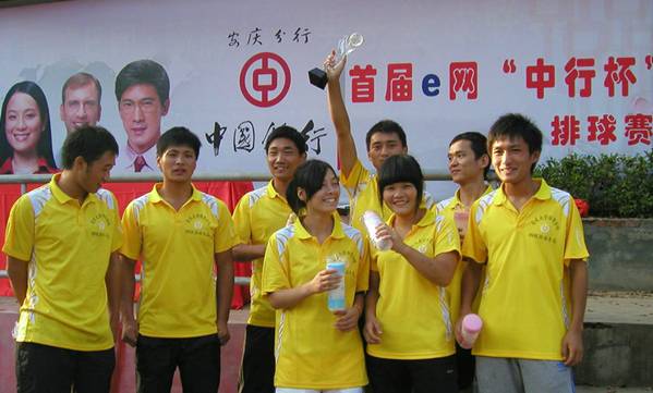 2009级排球专选班学生在教练李斌老师的带领下,凭借着扎实的排球基本功,稳打稳扎,领先不松懈,落后不松气,始终保持着旺盛的斗志和必胜信念。因学校离城区较远,学生在比赛过程中顶住了一日两赛,中午无法休息的困境。经过激烈角逐和顽强拼搏,学生最终摘得了首届e网“中行杯”排球赛桂冠。