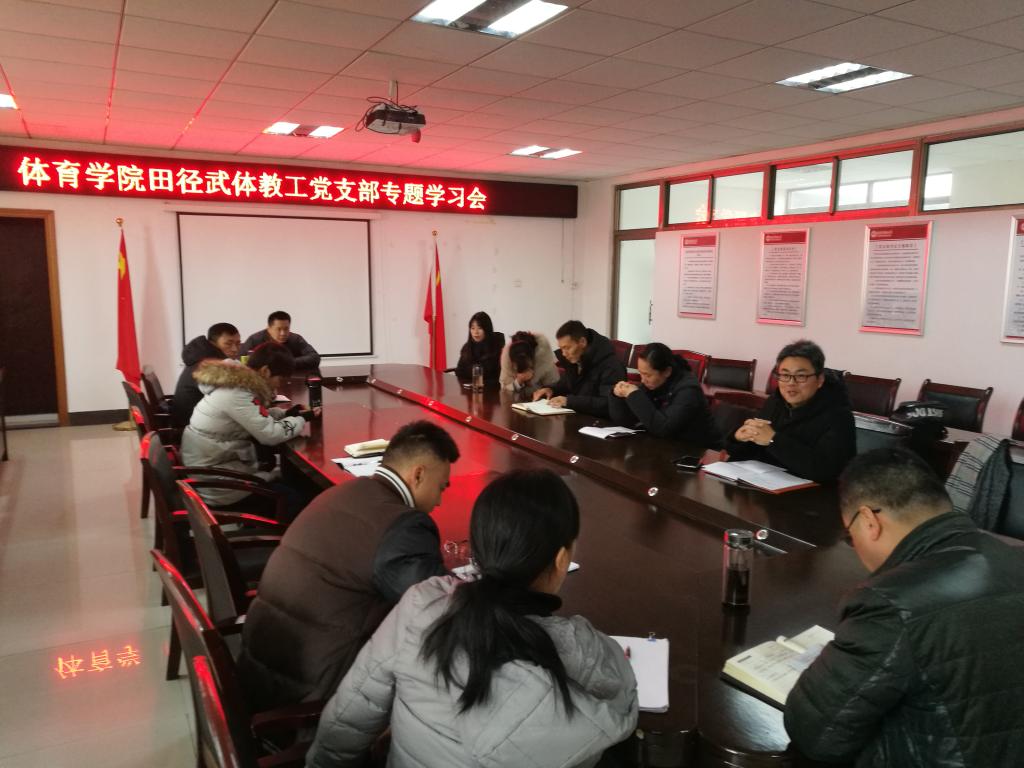 田径武体教工党支部在学院会议室召开专题学习会,学习习近平主席在庆祝改革开放40周年大会上的重要讲话精神,田径和武术体操教研室的党员教师参加了会议。会议由田径武体教工党支部书记王晓东主持。