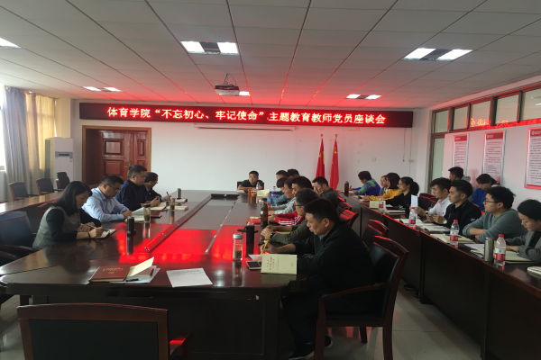 在会议室召开“不忘初心、牢记使命”主题教育教师党员座谈会。学院党委书记王开友、院长章翔、院党委副书记高栋梁、副院长林秋菊及全体教职工党员参加会议。会议由党委书记王开友主持。