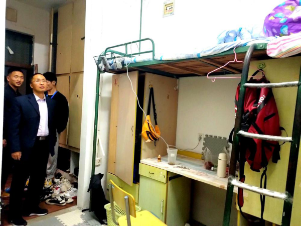 党委副书记高栋梁、辅导员储著奇带领学生干部对学生宿舍进行了冬季安全卫生检查。