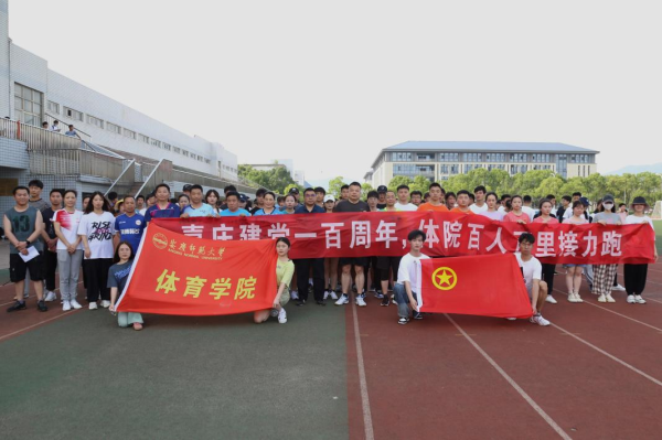 于校南田径场举办“喜庆建党一百周年,体院百人百里接力跑”活动,学院部分党员教师、全体学生党员、入党积极分子共200余人参加此次活动。