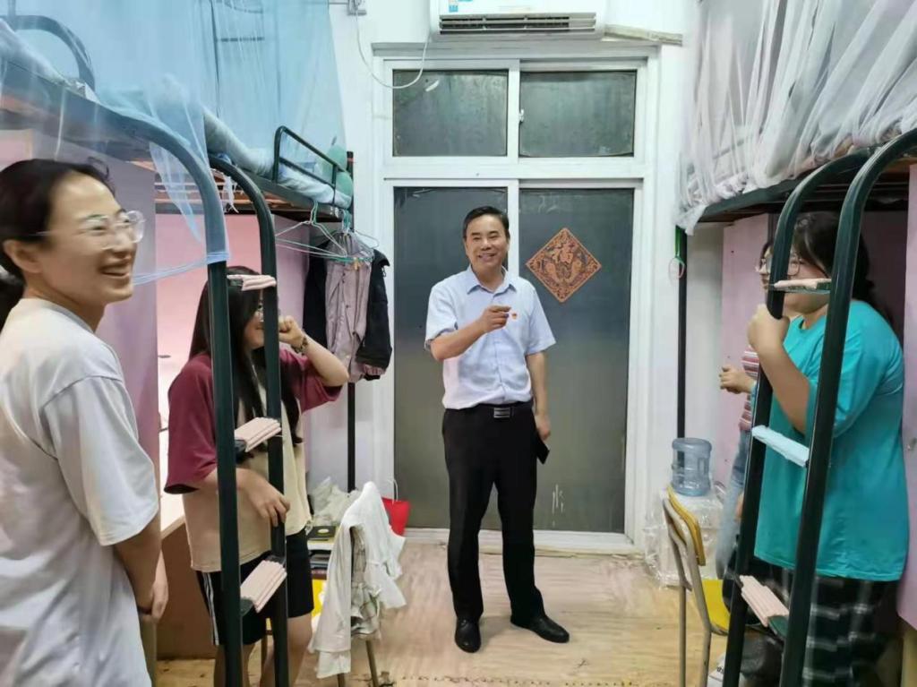 2021届毕业生即将离校之际,校党委副书记吴照明、党委宣传部常务副部长陈秀、学生处处长夏建华、安全管理处处长徐华胜、学生处副处长华秀梅在学院分管领导陪同下,深入体育学院2021届毕业生宿舍,代表学校看望慰问毕业班学生,表达学校对毕业生的深切关怀和美好祝愿。