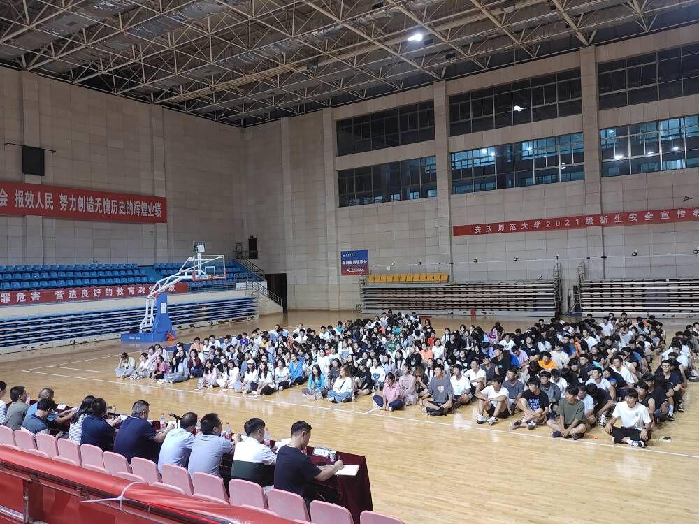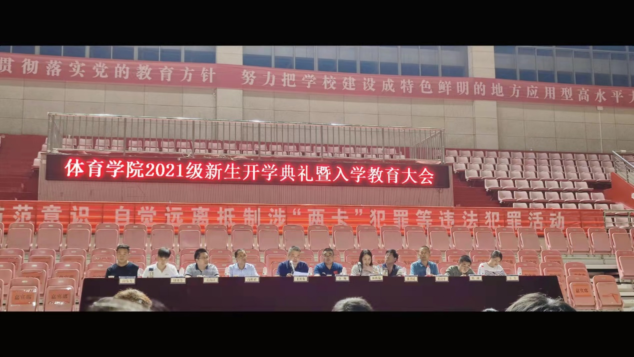 室内篮球馆隆重举行。学院党政领导班子成员、各科室负责老师、专职辅导员出席典礼。新老生代表及全体2021级研究生、本科生参加了典礼。典礼由院党委书记王开友主持。
