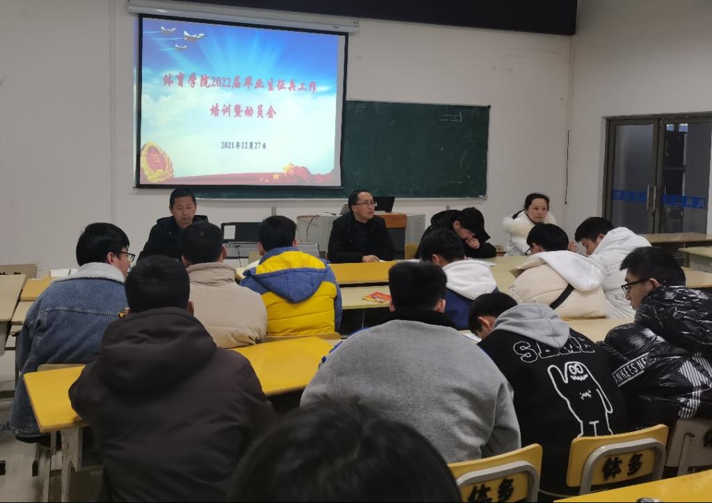 在二楼多媒体教室召开2022届毕业生征兵工作培训暨动员会。学院党委副书记高栋梁、毕业班辅导员和学院团委负责人出席会议,2022届毕业男生参加会议。
