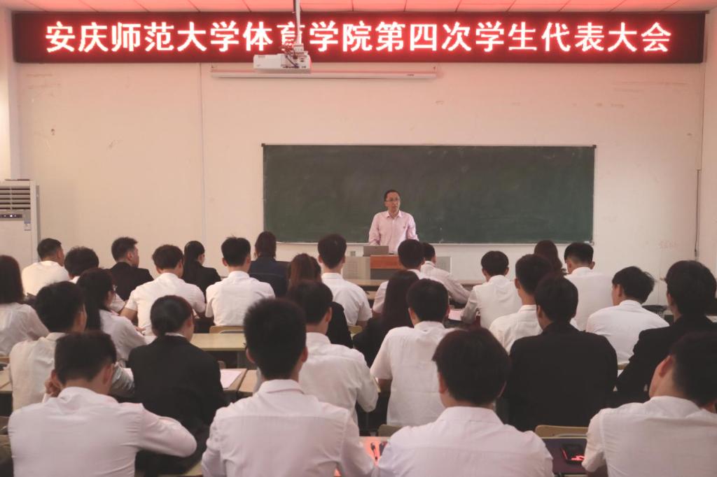 于体育馆多媒体教室召开第四次学生代表大会。学院党委副书记高栋梁、团委负责人储著奇、辅导员方芳等出席此次会议,学院全体学生代表参加会议。