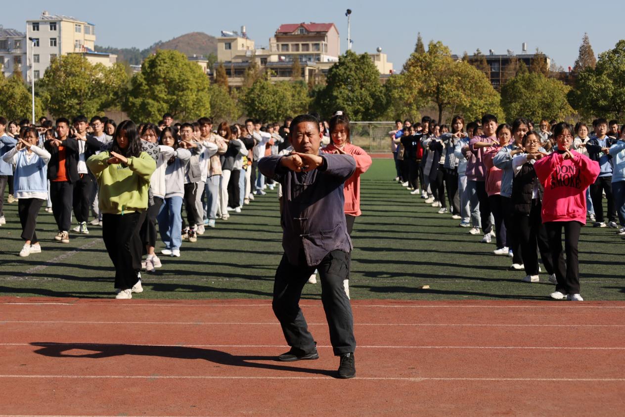 集体武术表演的330名学生日常训练的场景就是一道靓丽的校园风景线。作为武术集体演练指导教师,香蕉视频