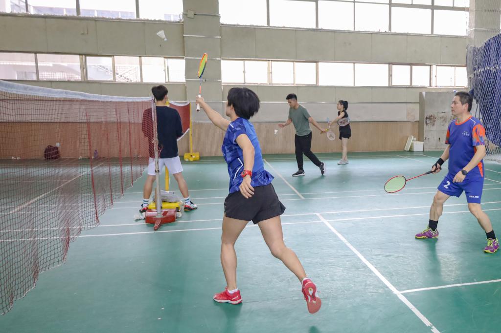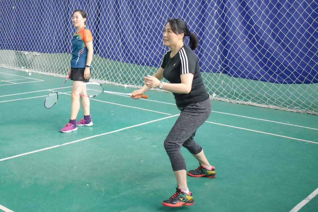 “漂亮!好球!这个球打得有想法!”2020级体育教学专业研究生纪丽娟和搭档是一对很有默契的混双组合。一个进攻猛如虎,一个防守稳如钟,两人都使出浑身解数来跟老师对抗。近两个小时的比赛,她几乎没怎么休息过。“打羽毛球时的全身心投入可以让我忘掉很多烦恼,而且能和老师同学们一起同场竞技也是一次新鲜的体验。”她表示,自己本科时学的是网球,长期锻炼出的臂力让她在交流赛中很“占上风”。